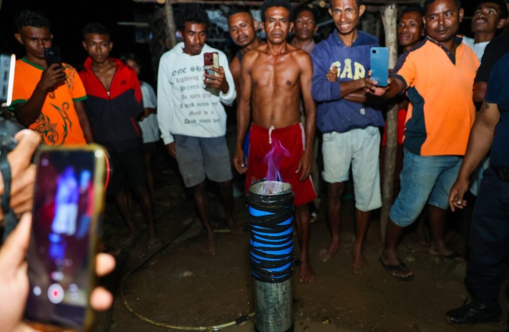 Komunidade indentifika gás naturál iha tersa dadersan, bainhira fura hela bee moos no solda hela kanu bee mos nian, derepente ahi lakan sai hosi rai ku’ak liu-hosi kanu lolon.