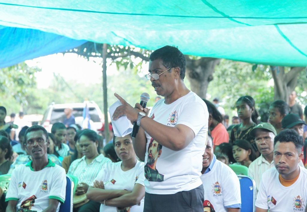 “Ohin loron, Maun General Taur Matan Ruak kaer ona ukun nu’udar Primeiru Ministru, no ninia periodu sinku anus atu remata dadaun ona, ami tenki fila hotu fali ba CNRT atu suporta Maun Boot Kay Rala Xanana kaer fali ukun, tamba nasaun no povo Timor-Leste nia moris ezije makaas tebes ba Avo Xanana nia matenek atu projekta nia planu ne’ebé di’ak ba povo iha rai doben Timor-Leste. Problema ida ne’ebé ami hare dadaun agora mak indústria simenti iha Caicido Baucau parado, dada kadoras mai iha Timor-Leste la temi ona, no seluk tan ne’ebé povo Timor-Leste suspira tebes sei falta matenek ida hanesan Avô Xanana atu orienta. Ne’e duni ami promete no jura katak, ami tenki afilia hotu ba CNRT hodi vota ba Maun Boot Xanana nia politika, atu CNRT tenki manan ho votos maioria hodi fó poder ba Avô Xanana kaer ukun ho livre dizaun, para projeta nia planu no matenek ne’ebé iha ba rai lulik ida ne’e, no povo ida ne’e nia di’ak ba future,” informa Sebastião liu hosi deskursu.