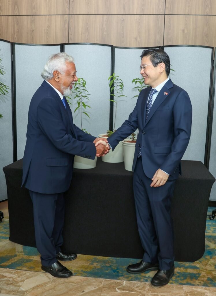 Primeiru-Ministru Singapura, Lawrence Wong  akompaña hosi Ministru Relasaun Exteriór Singapura, Vivian Balakrishnan.