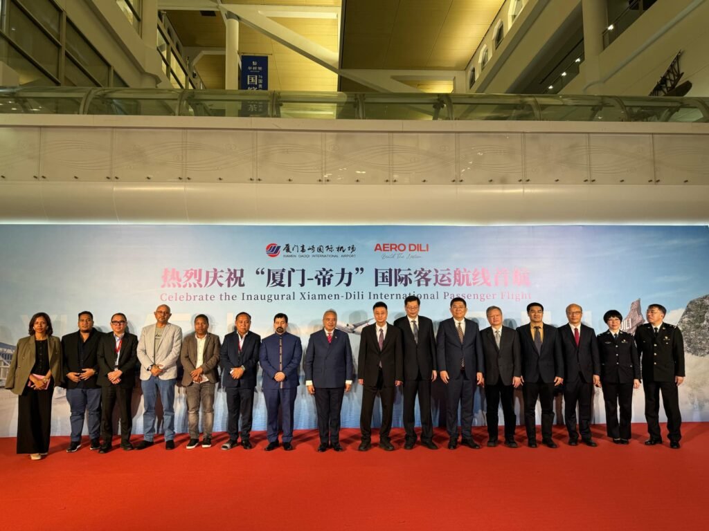 Vise PM no Ministru Koordenadór Asuntus Ekonómikus no Ministru Turízmu no Ambiente, Francisco Kalbuadi Lay konsidera, Emprezáriu Timoroan Aero Dili, Lourenço de Oliveira ho Autoridade Aviasaun Sivíl Timor-Leste (AACTL) marka istória tan foun ida ba nasaun rua ne’e liu hosi konektividade transporte aérea entre Dili-Xiamen.