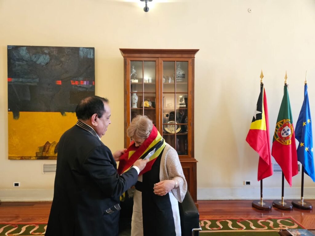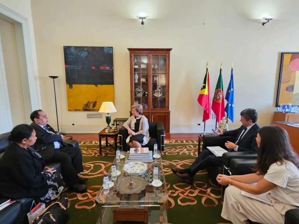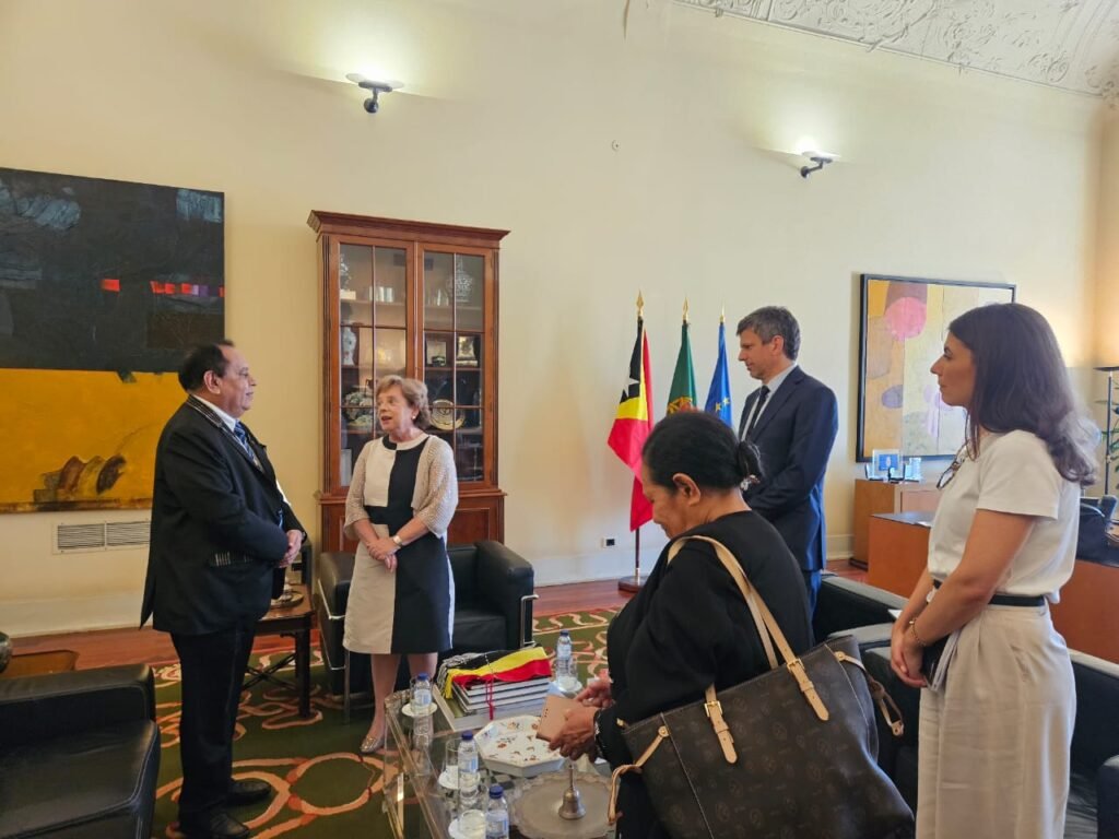 Smnewstl.com — Haktuir karta ho númeru referénsia 70/MNEC/VII/2025, loron 4 Jullu 2025, ne’ebé mak Ministru Administrasaun Estatal reprezenta Ministru Negósiu Estranjeiru no Kooperasaun aprezenta nota delegasaun ba reprezentasaun MNEC iha ámbitu Simeira Komunidade País Lian Portugues nian (CPLP) ho razaun importante balu.Aproveita oportunidade ida ne’e mós, Ministru Administrasaun Estatal Tomás do Rosário Cabral aprezenta pedidu sorumutu kortezia ho omólogu Ministru Administrasaun Interna, Doutora, Maria Lúcia Amaral no sorumutu ne’e akompaña mós husi Embaixadóra Timor-Leste nian iha Portugál, Señora Isabel Amaral Guterres no Xefe Gabinete, Benigno Humberto da Cruz.