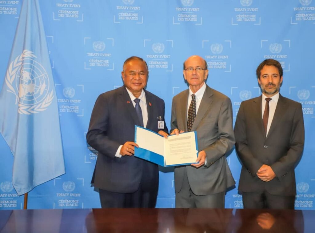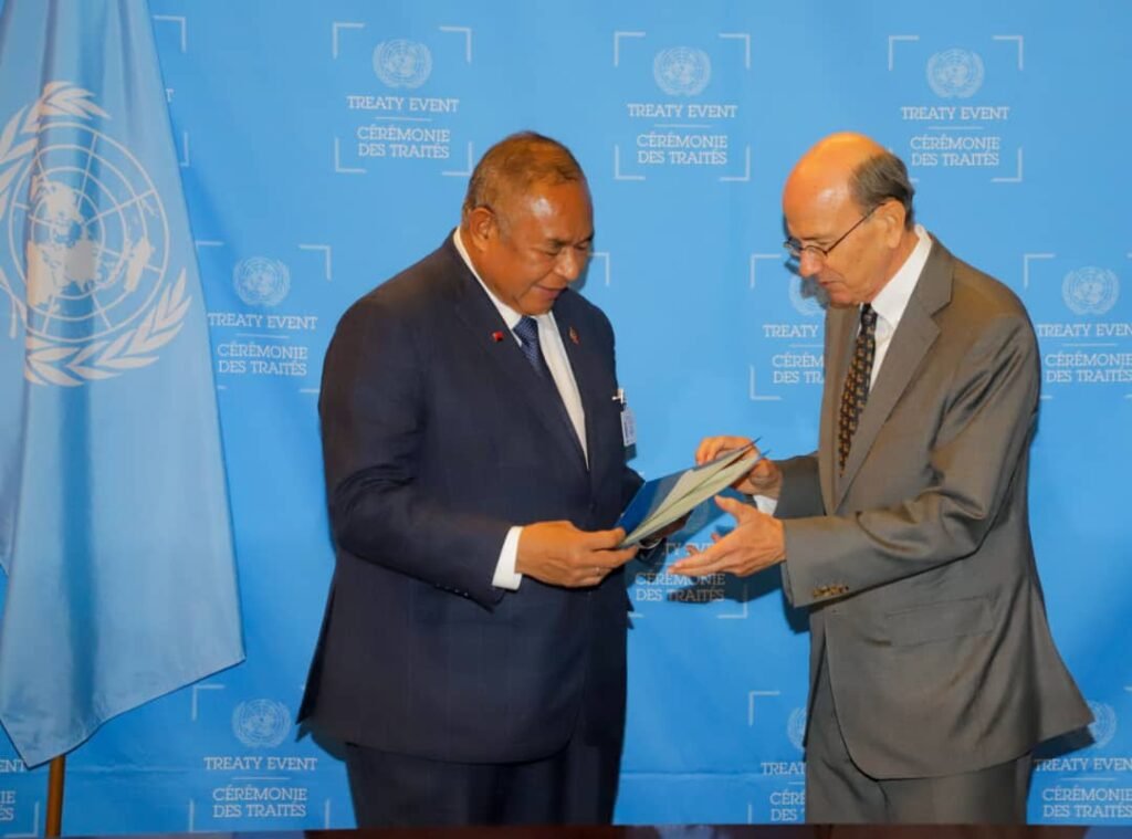 Smnewstl.com 26-09-2034 (Nova Iorke) – Ministru Negósius Estranjeirus no Kooperasaun, Bendito dos Santos Freitas kinta-feira ne’e, depozita formalmente Timor-Leste nia Instrumentu ratifikasaun ba akordu tuir konvensaun Nasoins Unidas kona-ba Le Tasi nian ba Organizasaun Nasoins Unidas (ONU).