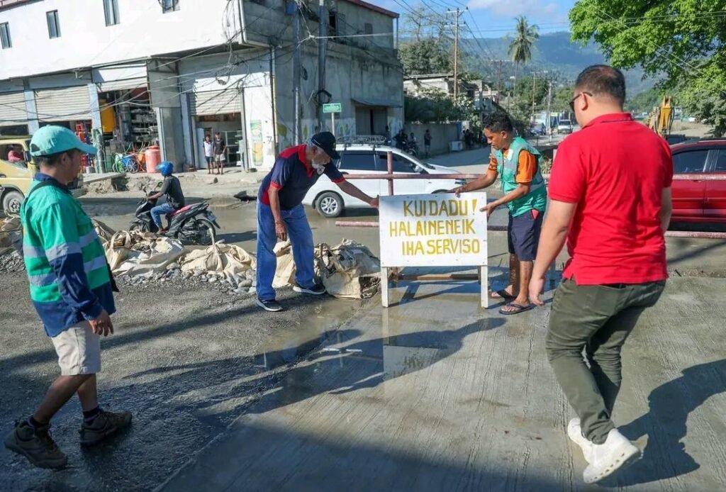 Iha terrenu, PM Xanana akompaña hosi Sekretáriu Estadu Asuntus Toponímia no Organizasaun Urbana (SEATOU), Germano Santa Brites Dias no tékniku sira hosi Ministériu Obras Públikas (MOP) kompostu hosi Enjeñeiru Tito Edgar F.N.D. Jesus atuál Xefe Planeamentu MOP, Koordenadór Laboratóriu Nasionál MOP, Joni Rodrigues ho Xefe Seksaun Kontrolu bá Xeias UIVP-MOP, Marcos Ximenes. ( */smnews)