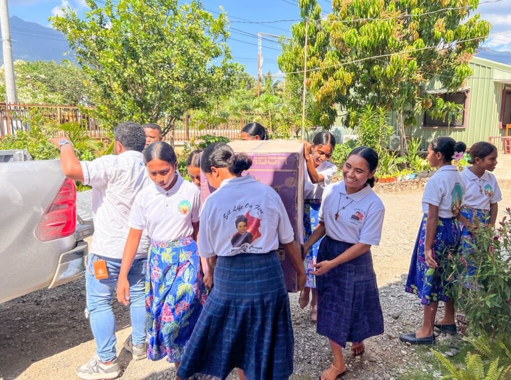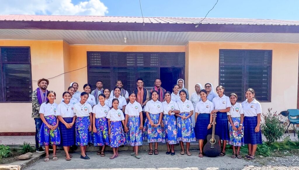 Prezidénsia halo entrega instrumentu múzika ba Kongregasaun Komunidade Santa Madalena de Canosa Maliana, iha postu Maliana, Munisípiu Bobonaru (05/08/2025).