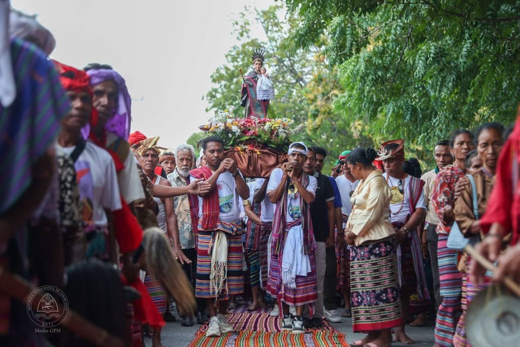 Smnewstl.com—Primeiru-Ministru (PM), Kay Rala Xanana Gusmão ho sarani sira hulan estátua durante prosesaun hodi komemora Loron Amudeus Coronél Santu António Manatuto bá dala-210 (CCX), ne’ebé kada tinan sempre selebra iha 13 fulan juñu.