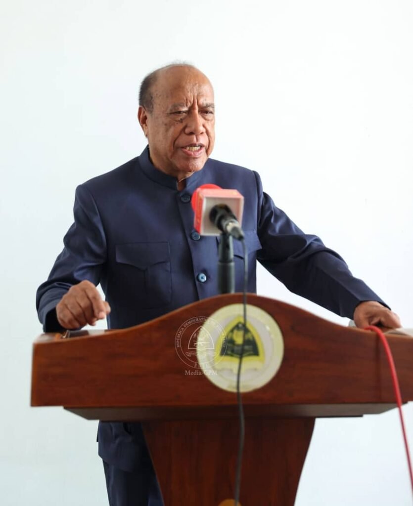 Smnewstl.com-Prezidente Autoridade Rejiaun Administrativa Espeisál Oécusse Ambeno (RAEOA), Rogério Tiago Lobato atualiza bá Primeiru-Ministru (PM), Kay Rala Xanana Gusmão kona-bá projetu rehabilitasaun estrada iha rejiaun ne’e, iha Palásiu Governu, sesta (13/12/2024).
