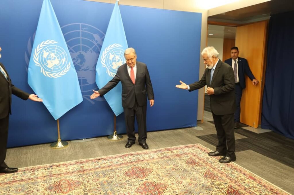 Sertidaun RDTL ne’e, Xefe Governu Xanana Gusmão entrega direta bá António Guterres nia liman iha nia servisu fatin Kuartél Jerál ONU, hafoin abertura Simeira kona-bá Futuru iha Sesaun bá dala-79 Assembleia Jerál Nasaun Unidas (AGNU sígla portugés), tersa (24/09/2024).
