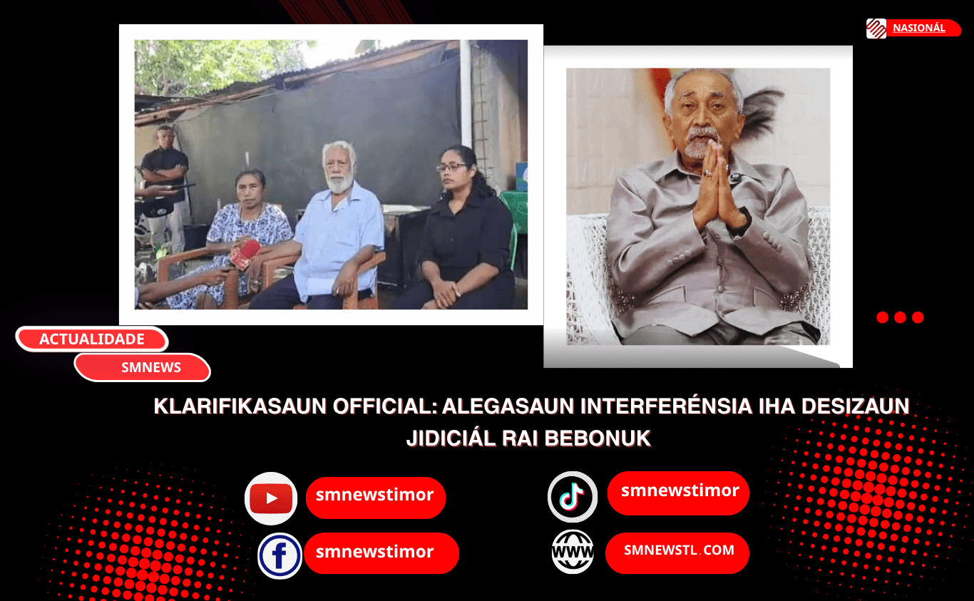 Smnewstl.com | Dili, 20 Abril 2026 – Kazu disputa rai iha Aldeia Metin Laran, Suku Bebonuk, Postu Administrativu Dom Aleixo, Dili, hetan ona desizaun final hosi tribunál rua, ne’ebé obriga parte sira atu kumpri ho respeitu ba lei no independénsia sistema judisiál.